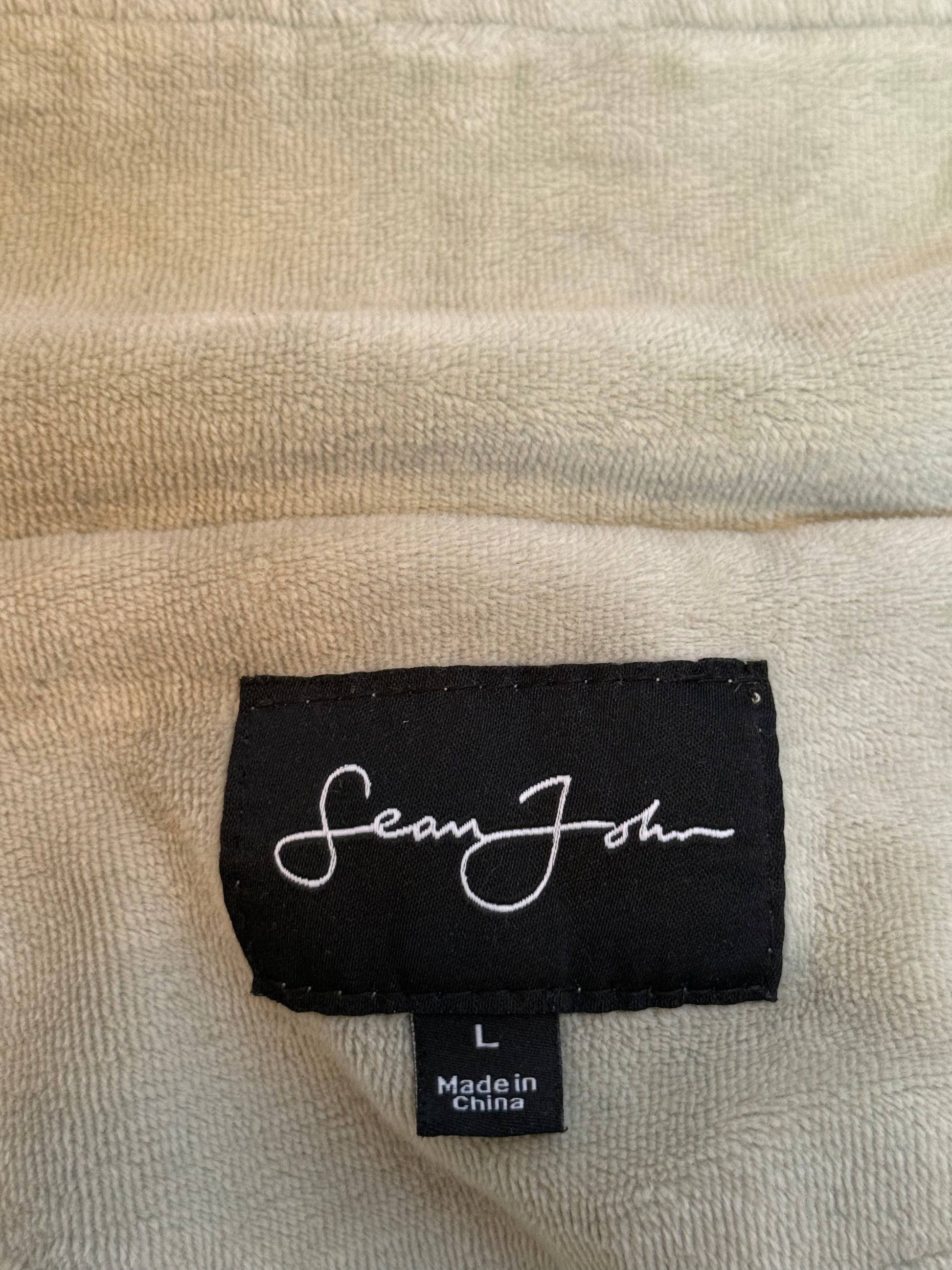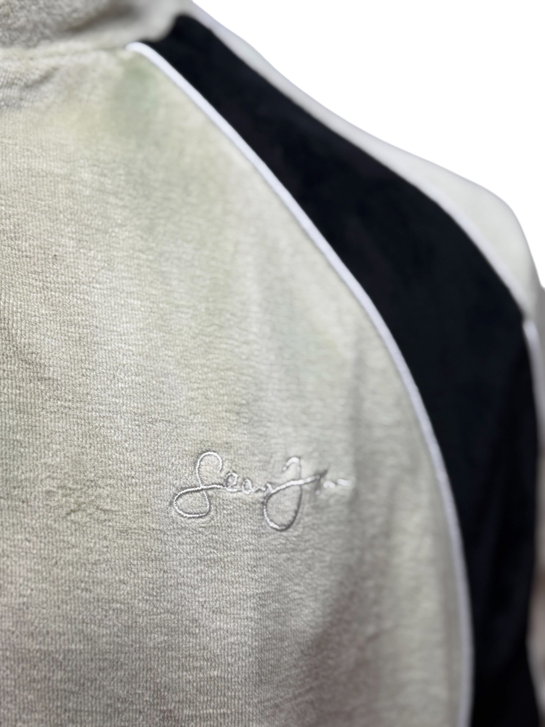 Vintage Sean John Track Jacket Zip Up Beige Black Velour Style Size L